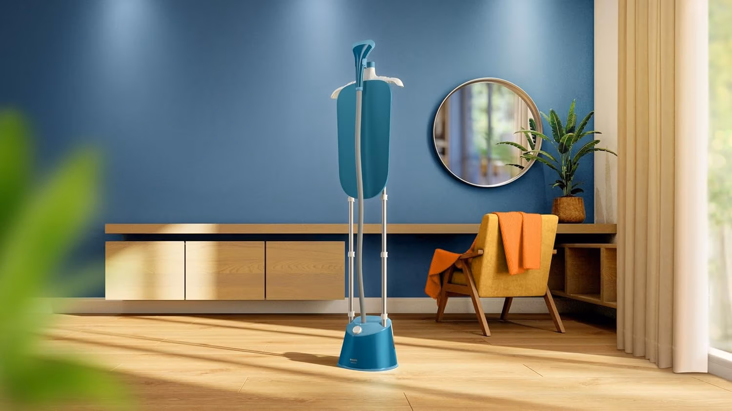 Philips Garment Steamer 1000 Series – 1800W, 1.8L Detachable Tank, 3 Steam Setting, 36 g/min, Integrated Stylemat, Blue – STE1040/26