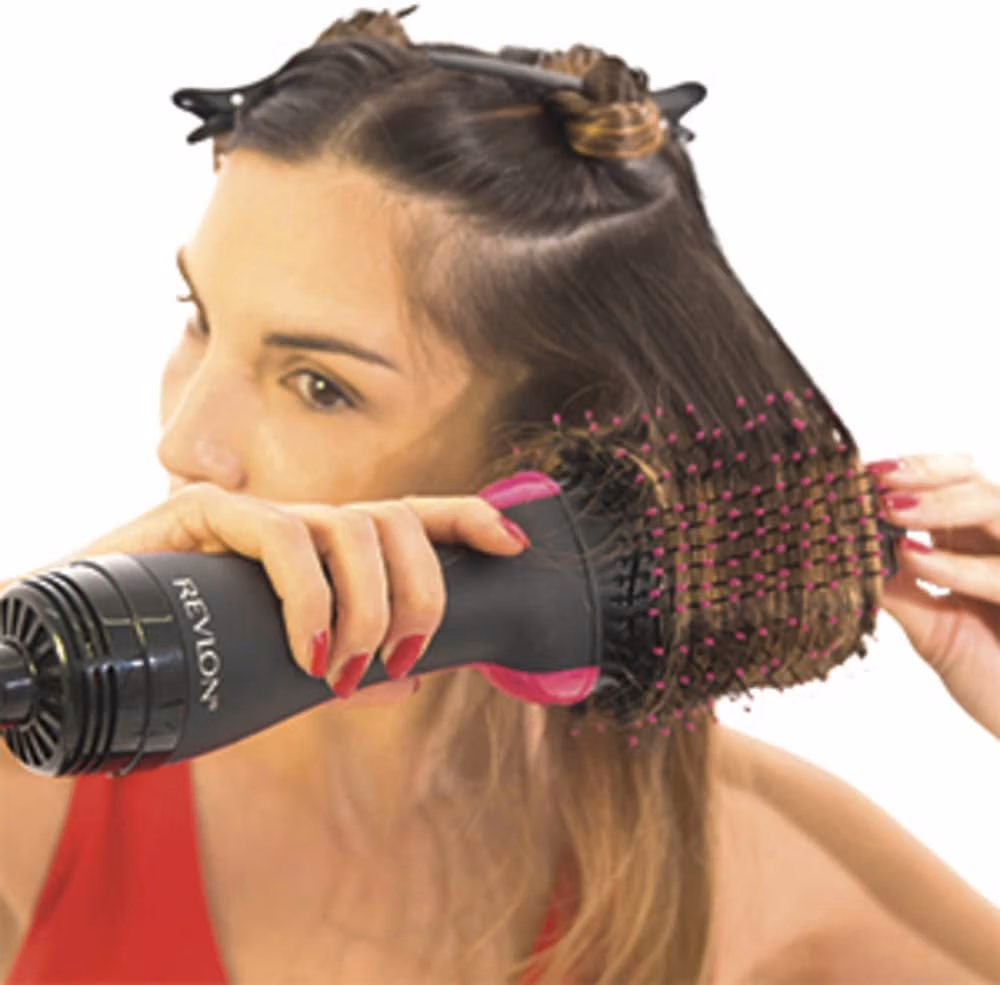The Revlon One-Step Hair Dryer and Volumizer is a designed Hot Air Brush to deliver gorgeous volume and brilliant shine in a single step. The unique non detachable oval brush design smooths hair while the rounded edges quickly create volume at the root for beautifully full-bodied bends at the ends in a single pass. The brush is designed with Nylon Pin and Tufted Bristles for detangling, improve volume and control. Styling flexibility is guaranteed with 3 Heat/Speed Settings and a Cool Option. Built to provide just the right amount of heat. Unlike conventional hair dryers, this volumizer can be placed closer to the scalp for lift. Boosted by Ionic Technology through a built-in genuine ION generator, hair dries fast and helps reduce heat damage. The One Step Unit is designed for 220-240 V, we do not recommend use of a voltage adapter or converter, as it will damage the unit. Safety first. The Revlon One-Step Hair Dryer and Volumizer meets U.S. safety requirements and proudly features the ETL Certification seal. Directions: For faster results towel dry hair to remove excess water. Separate hair into manageable sections. Item Weight: 1.8-pound.